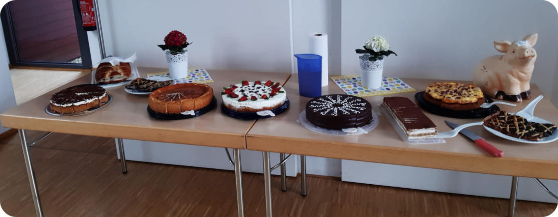 und Torten sind kostenlos, ein Spendenkässchen steht